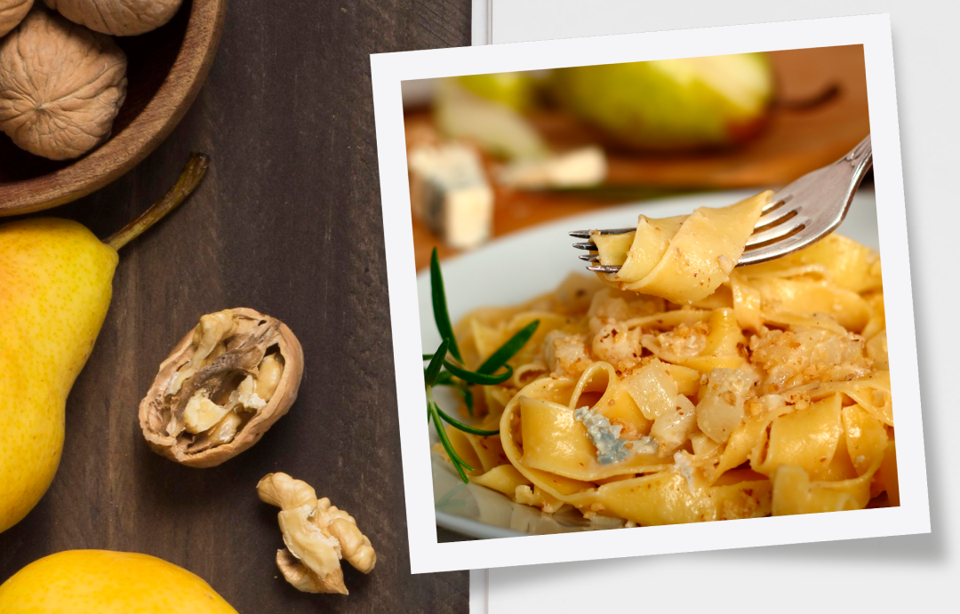 Pasta con pera, nueces y Gorgonzola D.O.P.